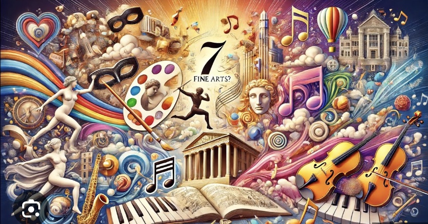 Painting, sculpture, architecture, literature, music, performing arts, and cinema.